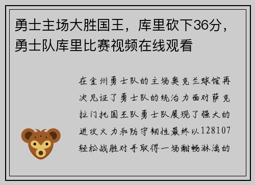 这场胜利不仅让勇士队重回胜轨,也让他们在西部standings中占据更有利的位置。球迷们纷纷表示,这或许只是勇士队王者归来的一个开始。期待他们在接下来的比赛中延续这种势头,向更高的目标发起冲击!